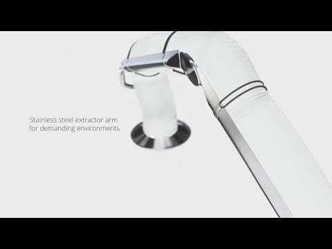 All surfaces finished in high-gloss polished (Ra ≤0,6) acid-resistant stainless steel, and the antistatic hose is fitted with quick connectors, making PSS the most easily cleaned extraction arm in the industry.