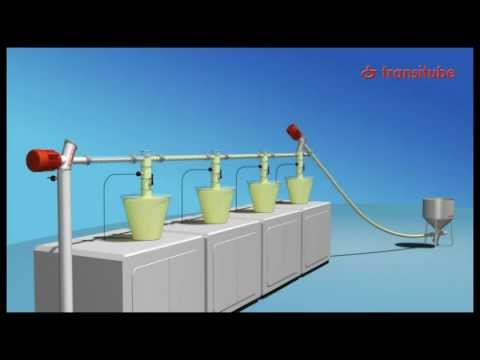 Durch den Einsatz von nur einem Fördermotor zur Beschickung von mehreren Maschinen arbeitet diese Anlagenvariante äußerst energiesparend. Zusätzlich sorgt die Förderspirale auf dem gesamten Förderweg für eine kontinuierliche Durchmischung des Materials. So kann es auch auf längeren Förderwegen nicht zu Entmischungen kommen. In Verbindung mit den staubfreien Fördereigenschaften der Spiralfördertechnik hat sich diese Technik speziell in der Produktion mit PVC-Pulvern als Standardlösung etabliert.