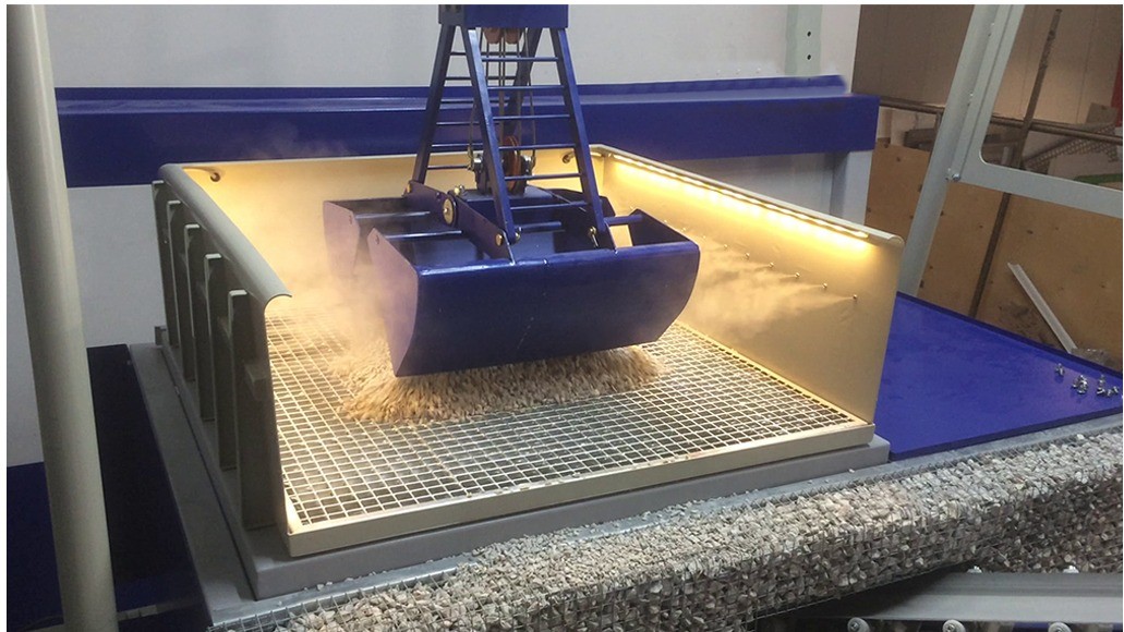 NEBOLEX Umwelttechnik präsentiert auf der Solids 2024 ein Funktionsmodell zur Staubbindung und zeigt dem Fachpublikum den Staubbindeprozess bei der Schüttgutverarbeitung im Kleinen, um die Wirkungsweise im Großen zu verdeutlichen.