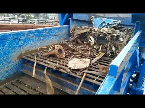 Die komplette Schrott-Reinigungsanlage SMCP MAX beinhaltet unter anderem einen 15 m³ Sammeltrichter mit Vibrations-Abzugsrinne TCV, welche gleichmäßig die ganz spezielle interVIB Schrottreinigungs-Siebmaschine VSL befüllt. Diese Siebmaschine ist mit besonderen 3D-Siebkassetten ausgestattet. Zusätzliche Kaskaden sorgen dafür, dass das Fördergut umgewälzt wird, um auch Toträume und große Flächen von Feinanteilen zu befreien.
